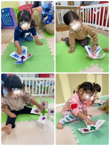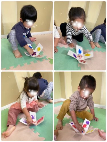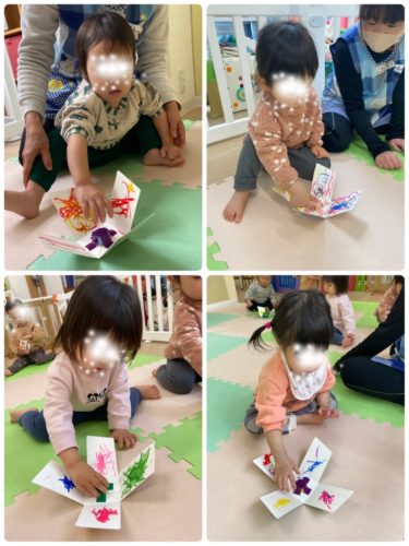 0歳児さんがフライングして遊んでいた『コマ遊び』と、あと『ふくわらい』でした☺️