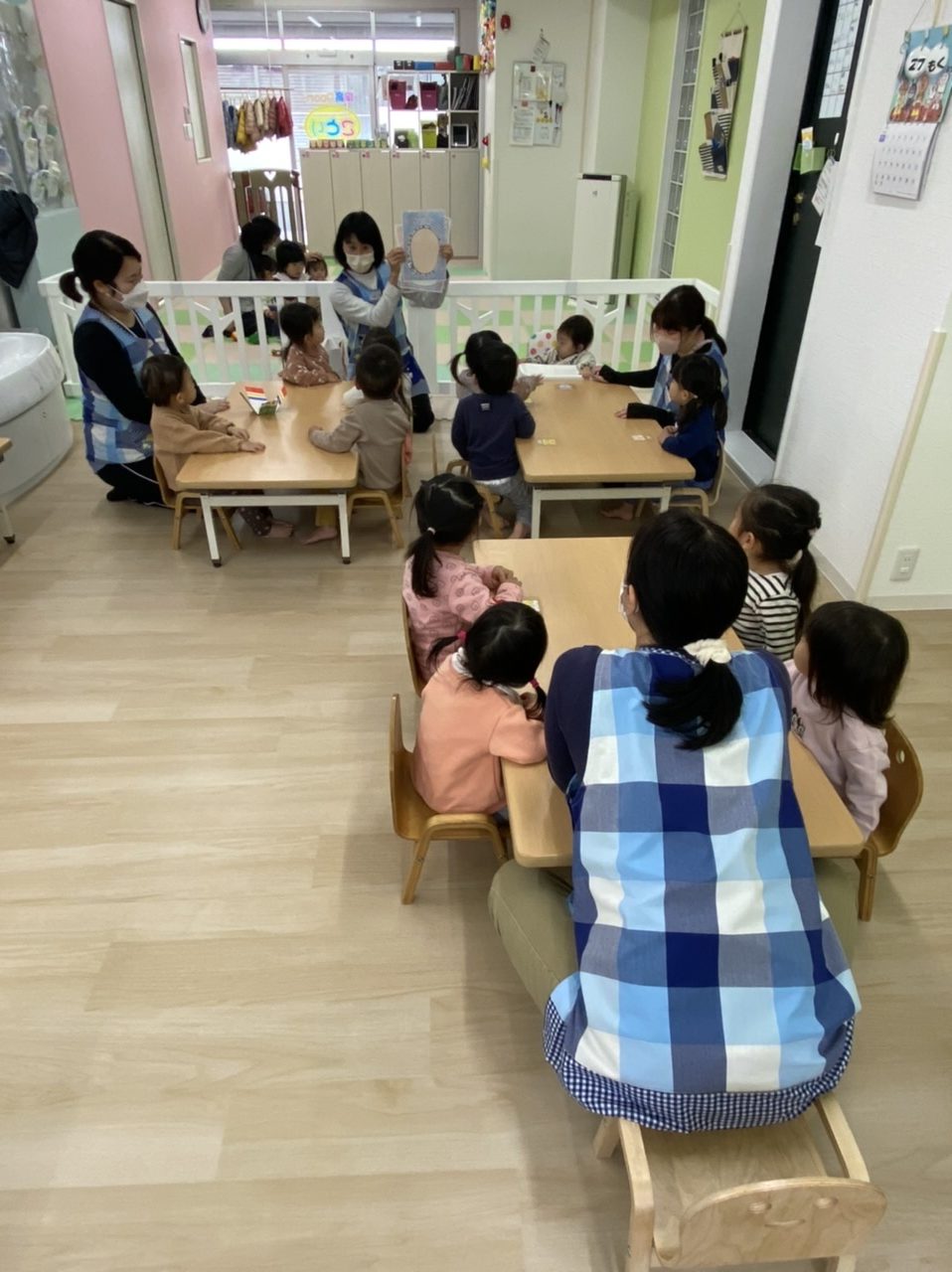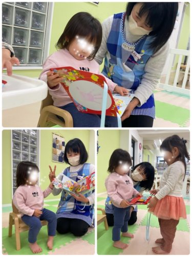今日は1月誕生日会でした🎉朝から何かの準備してる保育士を見て『何するの~?』と興味津々の子ども達😊