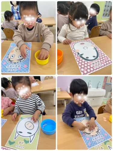 ふくわらいは、目や口のパーツが ちょっと分かりずらい部分がありましたが でも楽しみながら遊べたようです😊