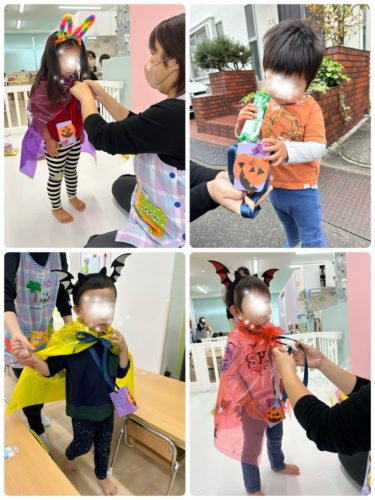 自分たちで手作りしたお菓子バックを持ち、ご機嫌な子どもたち🎃✨