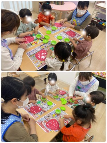 今日は、先週の『いちご🍓製作』の仕上げをしました。