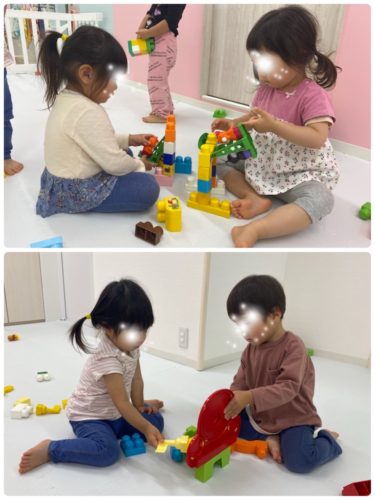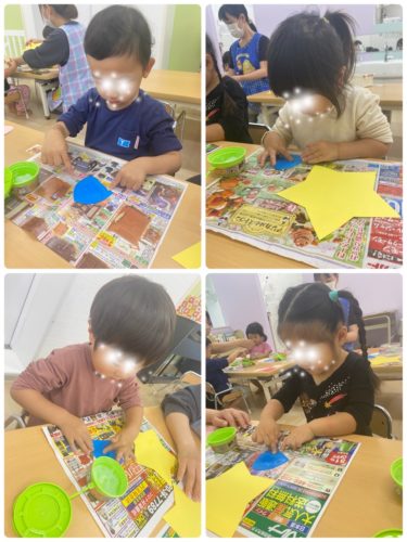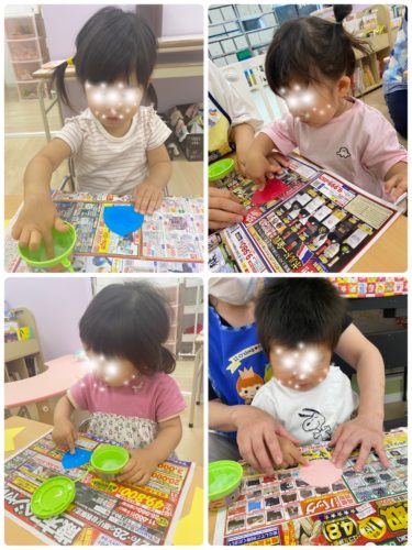 0歳児のお友だちは、型スタンプをしました☆。.:*・゜
