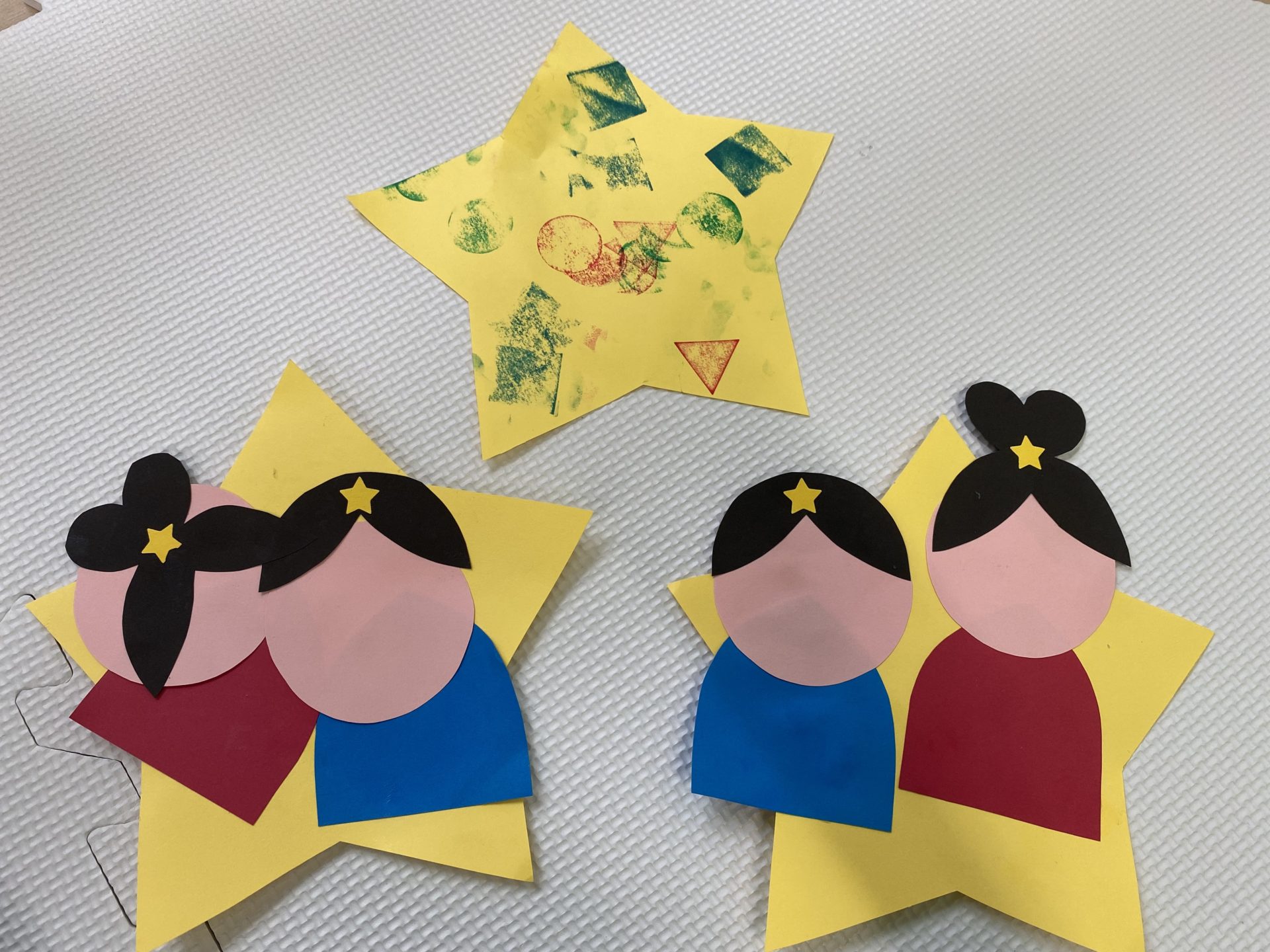 彦星と織姫を、星の台紙に糊付け作業です🎋