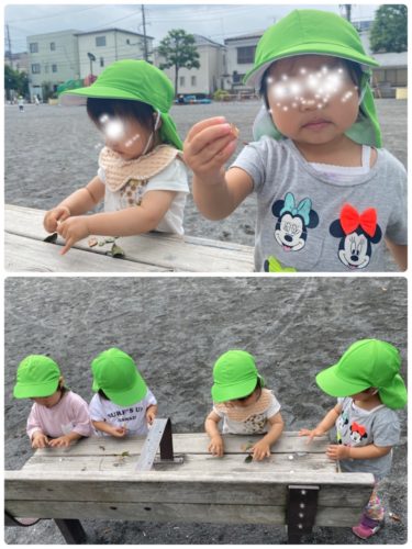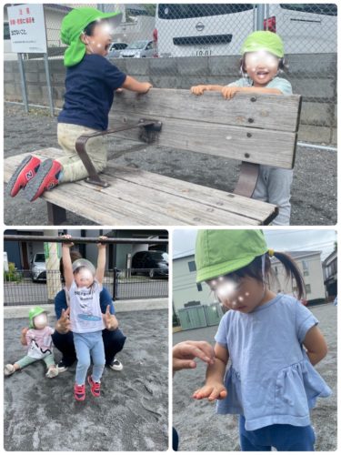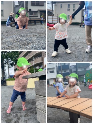 低月齢児は保育士と一緒に葉っぱを並べたり滑り台をしたり🎶