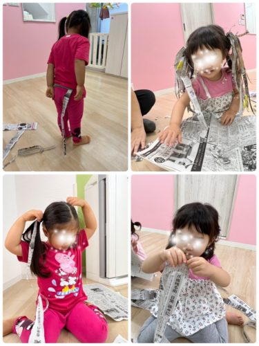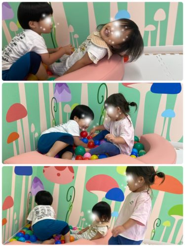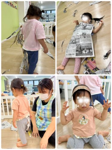 新聞紙遊びやボール遊びもしつつ、連休明けの雨の日は元気に過ごしました😊