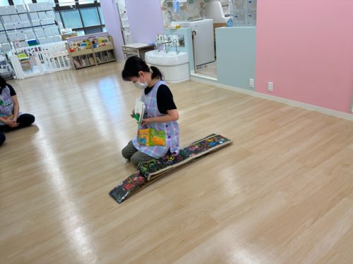 関連した絵本で気持ちを電車へ…電車へ…と導きます。