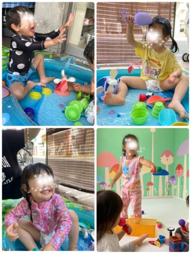 元々は8月いっぱいで水遊び終了の年度が多かったのですが、ここ数年は残暑が続き9月になっても水遊び継続が多いです。