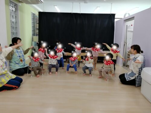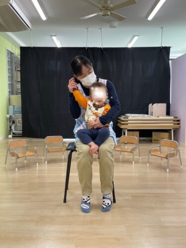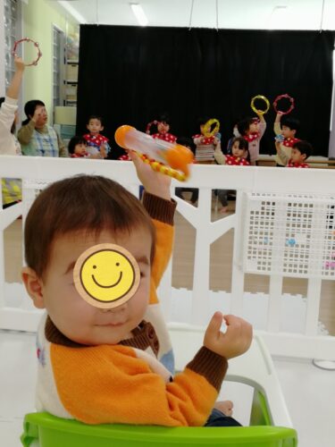 0歳児は親子一緒に参加なので今日は先生と一緒に歌遊びをやりました♬