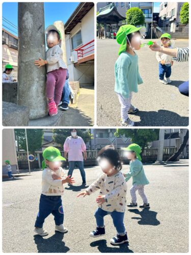 保育Roomことり.2023.4.19.(水) 2023.04.19 今日はまた随分と夏日になりまして、半袖が正解でした☀️暑かったです。 天気予報って、すごいなぁ👏と改めて思いました。 御嶽神社は車が入ってこなくて安全地帯なので今日もお邪魔しました♪̊̈♪̆̈ 日光浴してビタミンチャージ完了✌️水分補給も嫌がらずに出来たので一安心( *˙ω˙*)و 今日も元気いっぱいの子ども達でした☺️