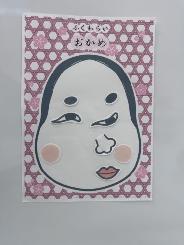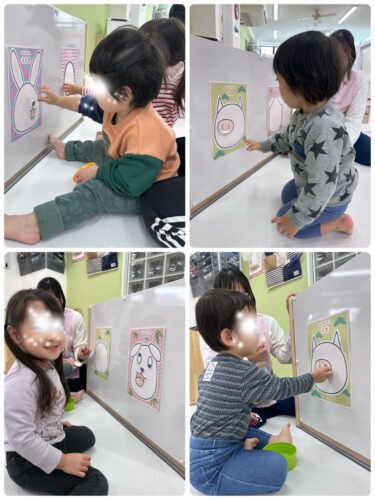 そして正月遊びの 福笑いをしました。まずは 保育士がお手本です!😆