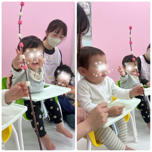 今日は、お正月🎍🌅🎍の行事でした。まずは、お正月飾りの餅花のお話を聞き実際に触れてみました🍡