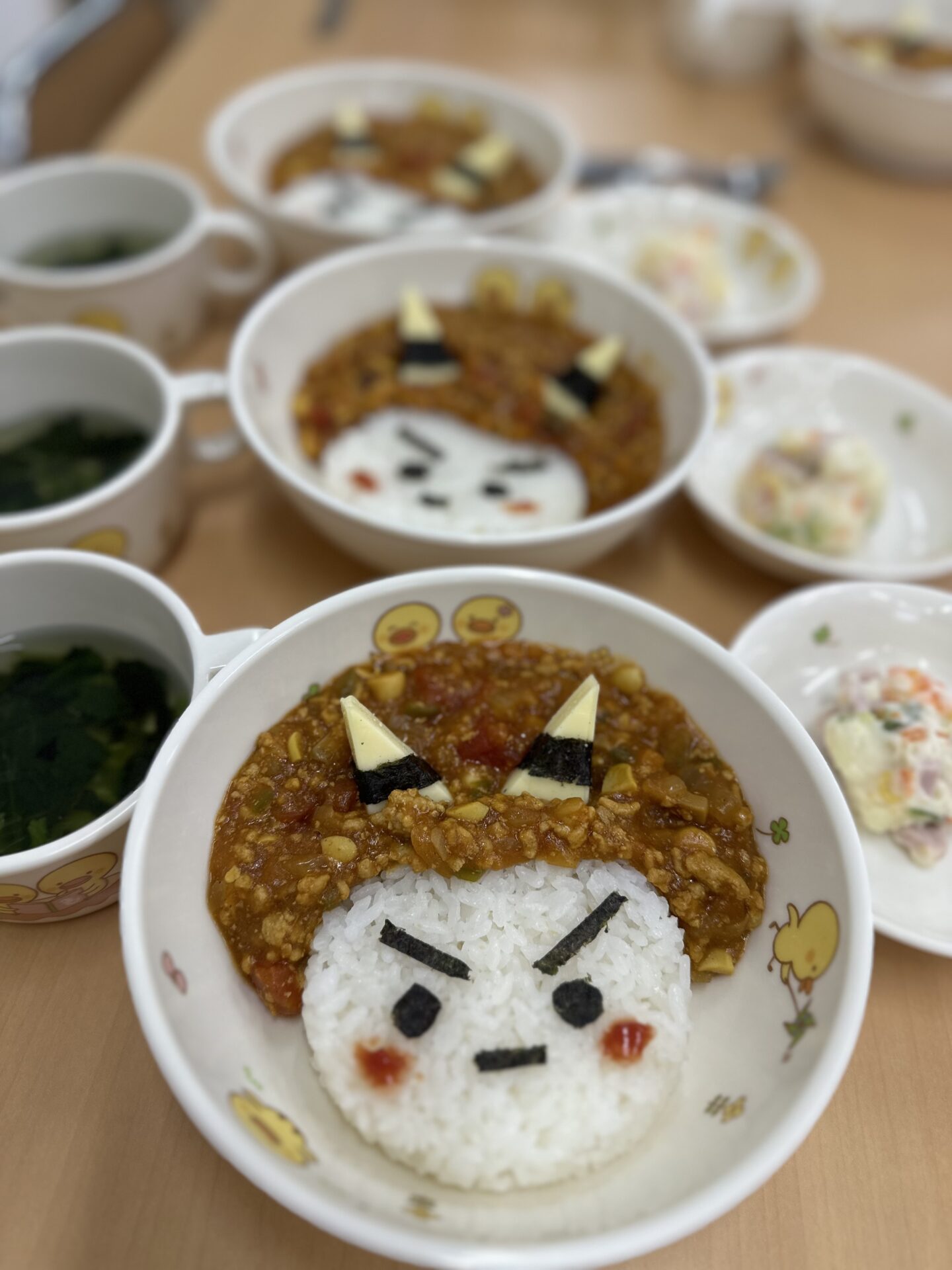 カレーが鬼さんにアレンジされてて、子どもたちは見た瞬間 釘付けでした.•♬