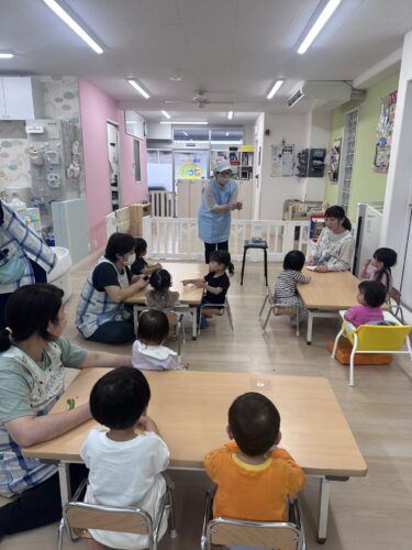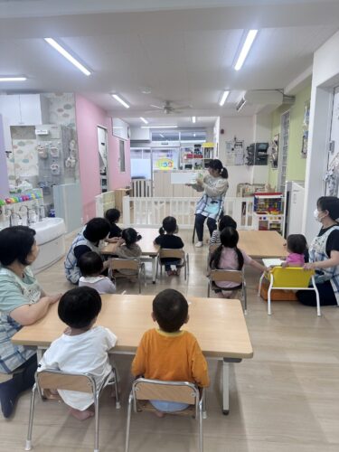 最初は2歳児…という予定でしたが、1歳児さんも飛び入り参加し豆に触れました♬