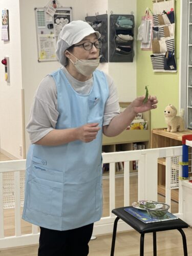 まずは、栄養士の英子先生から絹さや&スナップえんどうを食べるには筋をとると食べやすくなる話を聞きました👂