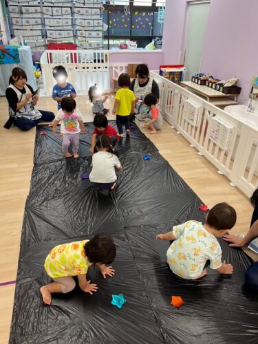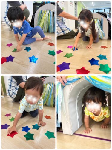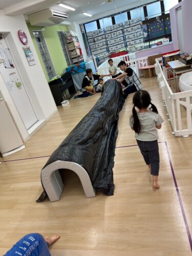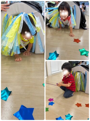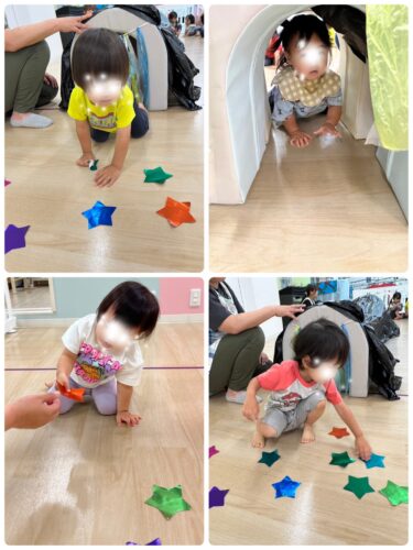 トンネルの入口で ちょっと躊躇する子もいましたが、その先に お友達やキラキラお星さまが待っている事を知り ゆっくり入る子も𐤔