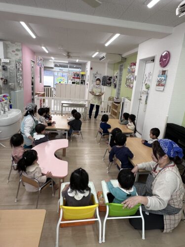 クイズ形式で、このお腹はなんの野菜でしょうか!という楽しい内容だったので保育士も子どもたちと一緒に盛り上がってしまいました(笑)