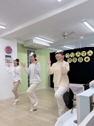 泣いてしまった子も、笑顔で参加できた子も、みんながその場にいて、雰囲気を味わえたことが“結果オーライ”のクリスマス会でした。