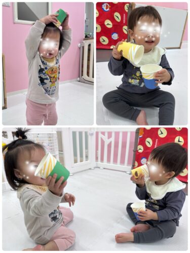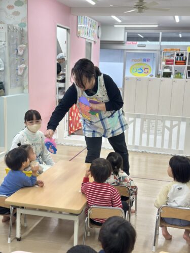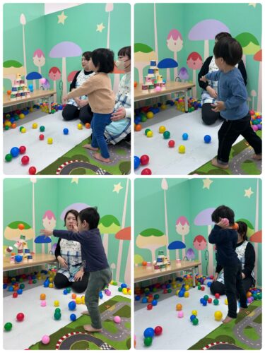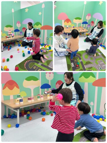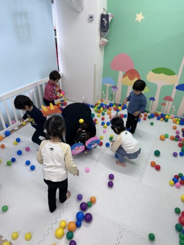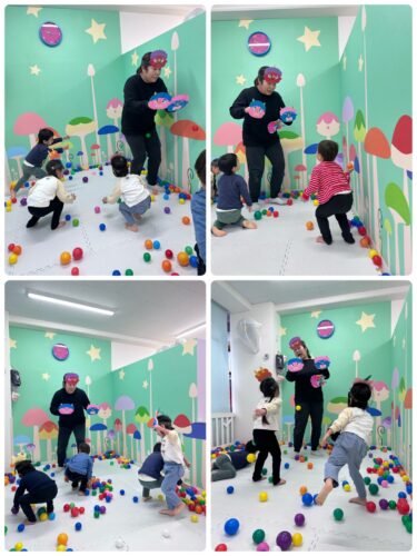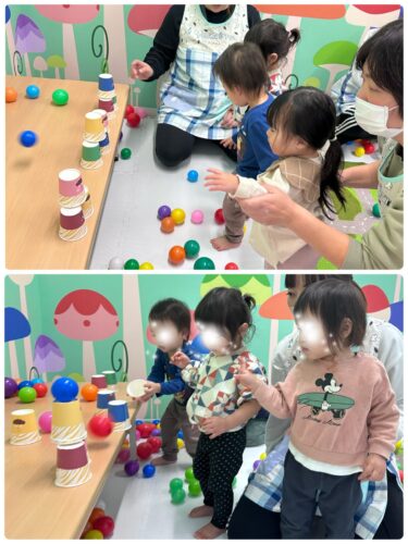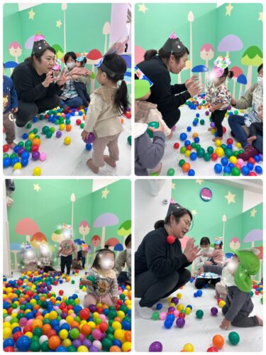 そして、まずは低月齢児から カラーボールの豆まき開始です🎶