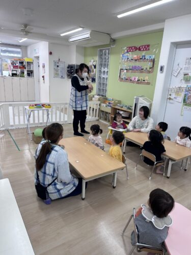 まずは、保育士から簡単な説明を聞きます。みんな興味深々です!