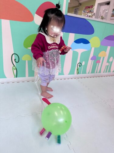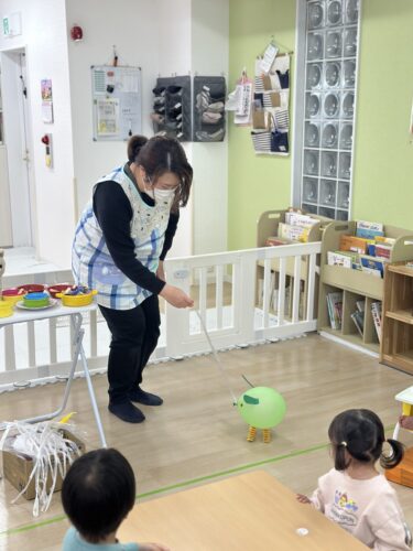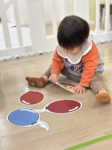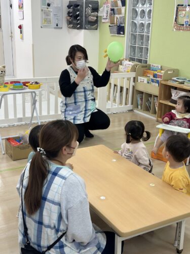 風船がどうしても怖くて嫌がってしまった子は、パネルシアターーの風船と触れ合って遊びました。