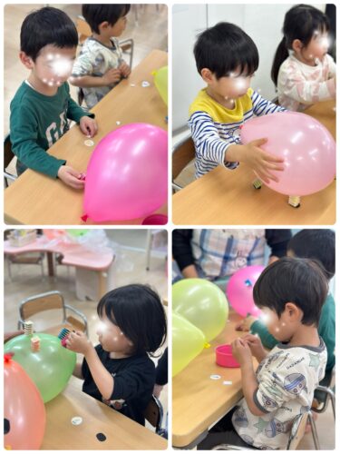 さてさて、それぞれ風船に装飾してMyペットを作る時間になりました♡