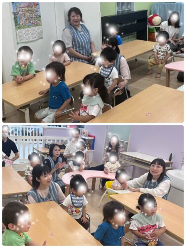 2歳になるH君とIちゃんです(^^♪ お父さんお母さんも参加してくれたので賑やかな誕生会になりました。