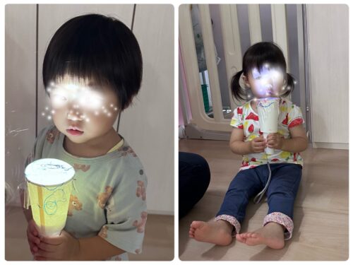 懐中電灯に興味を示す子もいて、覗き込んだら眩しくて目が痛くなるから見ないで――――――!と言ったものの自分が描いた絵が照らされた元を見たくなるのは仕方ないですよね。