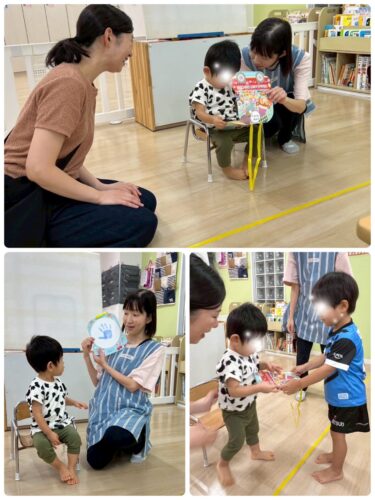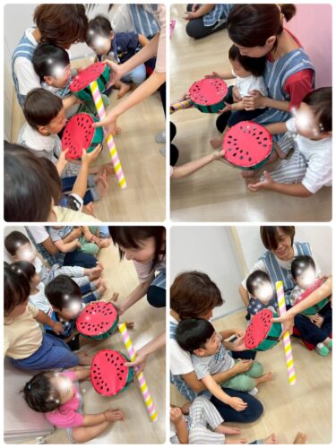 「スイカ食べたいね~」とお話しする子もいて、夏らしい楽しいお誕生会になりました。