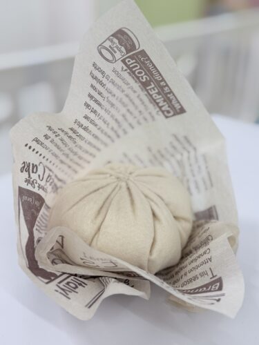 よく目にする中華まんですが、実際にどのように作られているのかを知る機会は、なかなかありませんよね。今日のおやつの“ 川崎餃子まん ”は粉から手作りとのことで、せっかくの良い機会なので生地に触れさせてもらいました。※実際におやつとして提供する生地は別のものを使用し衛生面に配慮して行っています。