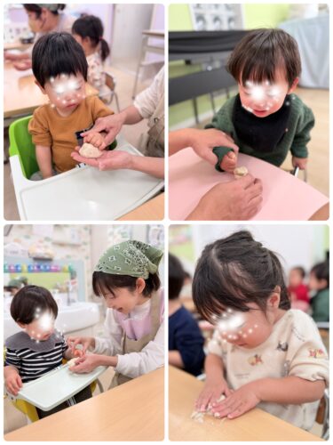 今日は食育活動“ 餃子まんの生地を触ってみよう ”でした♪