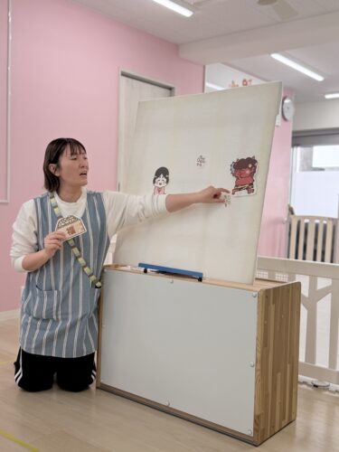 まず節分の由来について簡単なお話を聞き、その後パネルシアターを楽しみました。