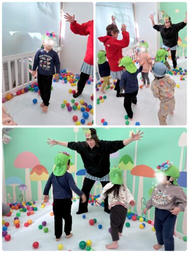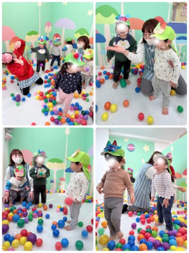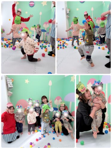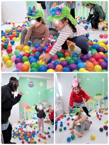 豆まきでは、豆の代わりにカラーボールを使用。