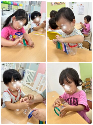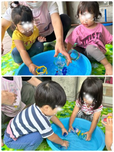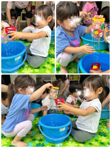 ミニジョウロは簡単な遊びなので0歳児~みんな楽しめていました😁
