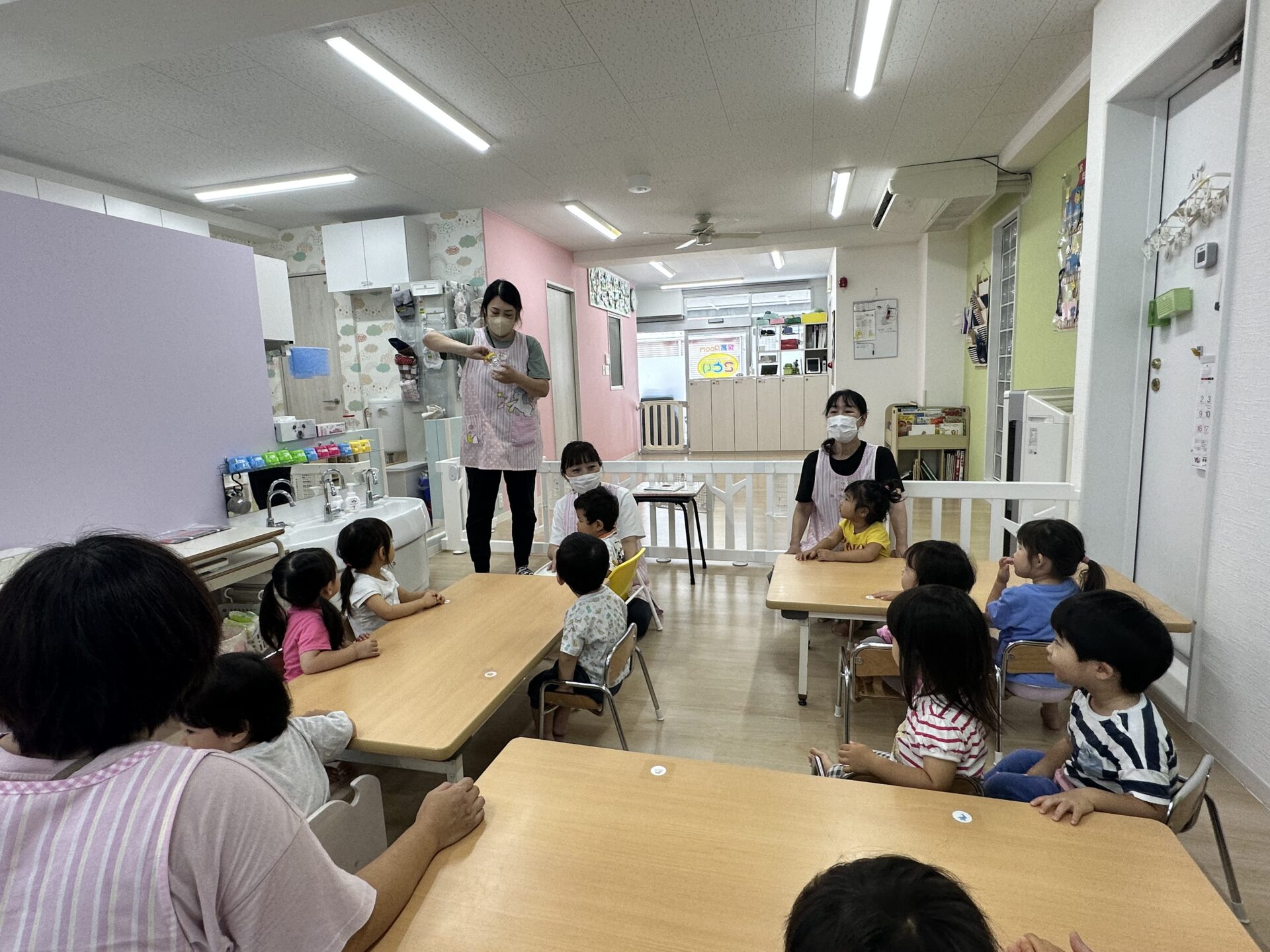 みんなが大好きな、だるまさんシリーズの大型絵本が出てくると 『わぁ~大きい😂』早く見たい見たい!と大興奮の子供たちでした。
