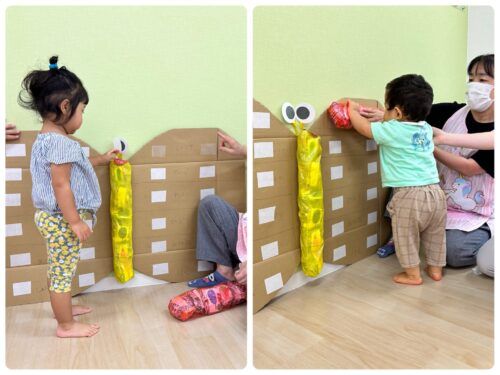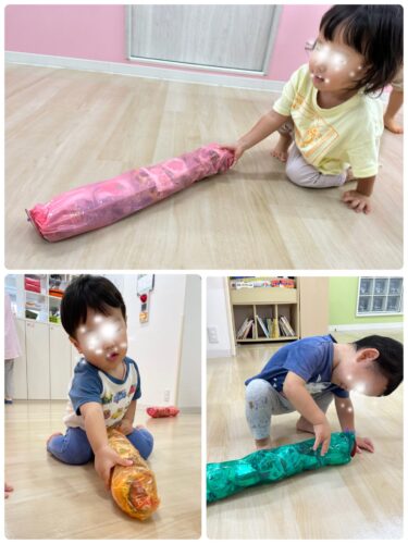 あおむしさんにお散歩させて遊びました!(電車だと思ってる説もありましたが…)