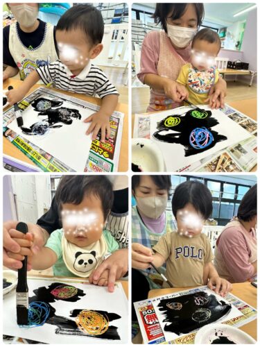 高月齢児は、自分で型をずらしながら好きな場所にをくるくる描きました️🖍