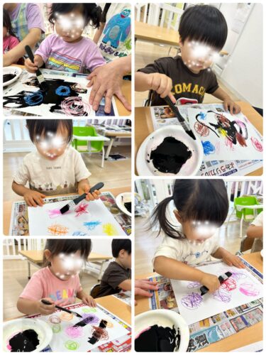 今日は、これの上から絵の具を塗り はじき絵をしました♪̊̈♪̆̈
