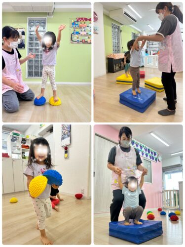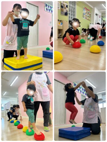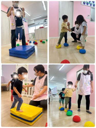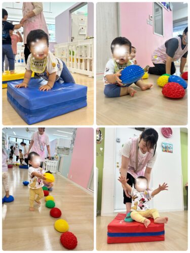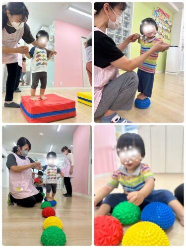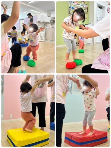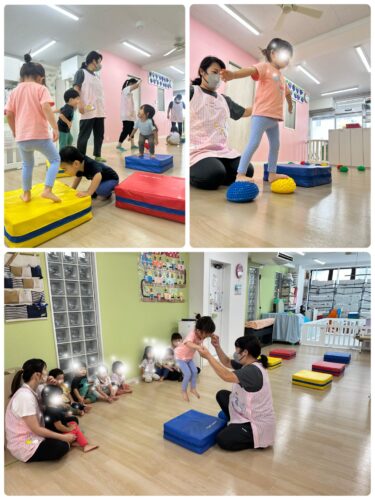 そして今日のお楽しみは、よーいドン!ゲームと、ジャンピングマット遊びとハーフヨガボール遊びです♪(らいらっく幸さんに貸して頂きました)