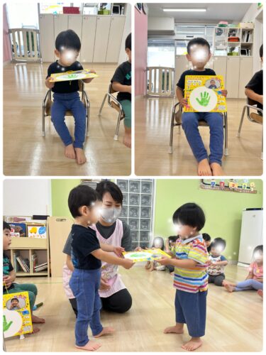 9月生まれは二人です。昨日誕生カードの手形スタンプを押したので自分が主役なのは自覚があったようで朝から『まだ?』ってソワソワしているお二人さんがとても可愛かったです♪