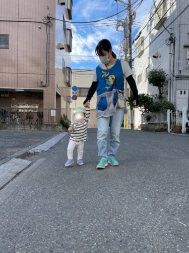 登園時間がバラバラなので、今日は2グループに分かれて散歩に行きました(๑•ᴗ•๑)