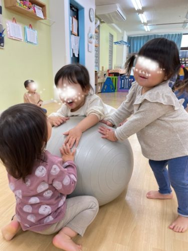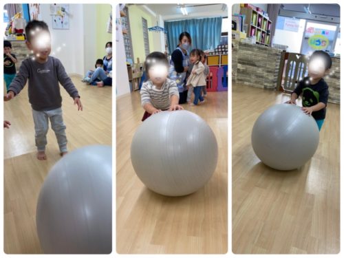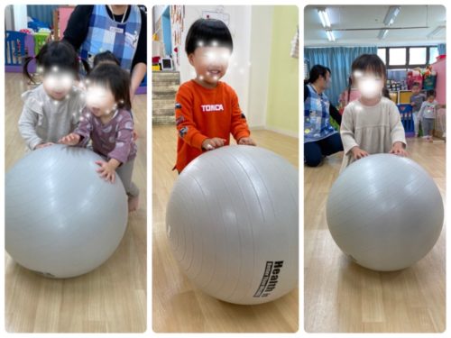 その後はバランスボールの大玉ころがし遊び🐢💨