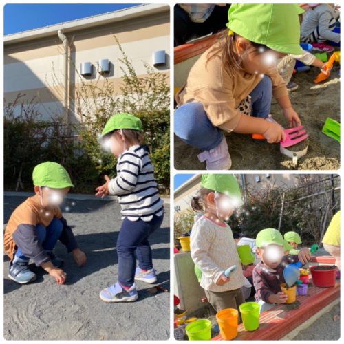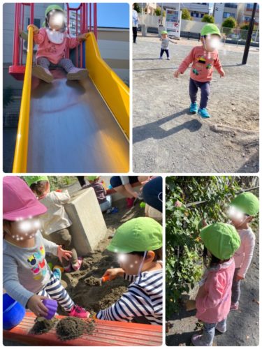 砂場を拠点として、滑り台に行ったり スイングに行ったり工事現場を覗いたり!!