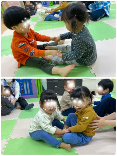 お船はぎっちらこは、お友だちと手を繋いで息を合わせて引っ張り合います。