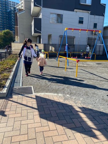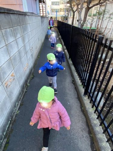 暖かい砂場が混んでしまったので、希望者のみ第四公園から外に探検に出かけました(笑)