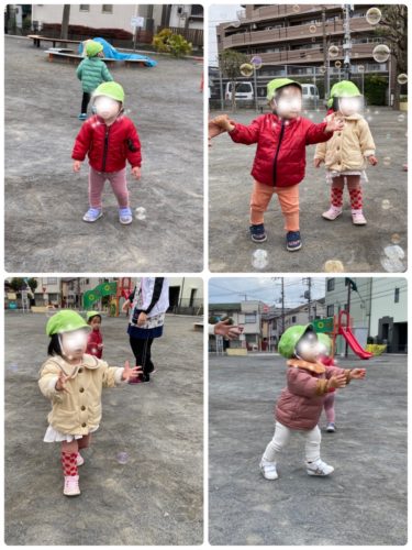 結構 風が吹いていて シャボン玉が秒で消え去る…という悲しい事実(笑)w