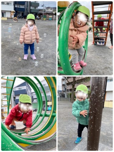 体調があまり良くない子が多く、無理のない程度に短時間 外遊びに出ました。