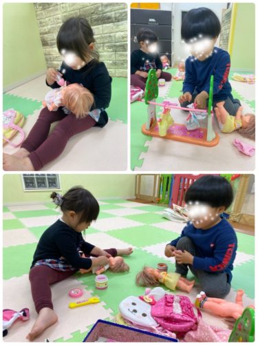 それから、お部屋で遊ぶチームは メルちゃんで お母さんごっこを😊