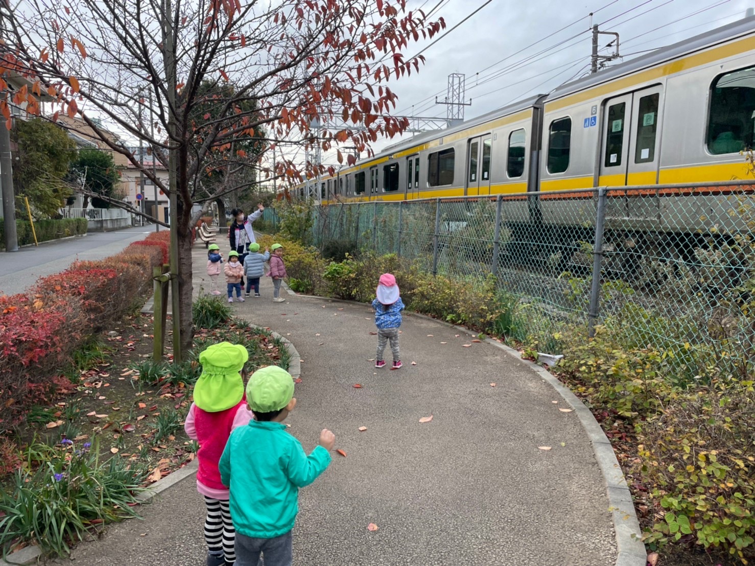 体調があまり良くない子が多く、無理のない程度に短時間 外遊びに出ました。