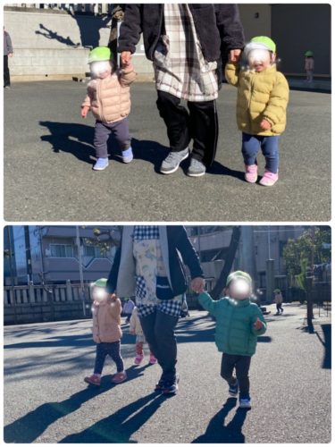 神社では、本年もどうぞ温かく見守って下さい⛩✨とお願いしつつ、❝ 子供は風の子🍃🌀🍃❞ で、元気に遊んできました‼️
